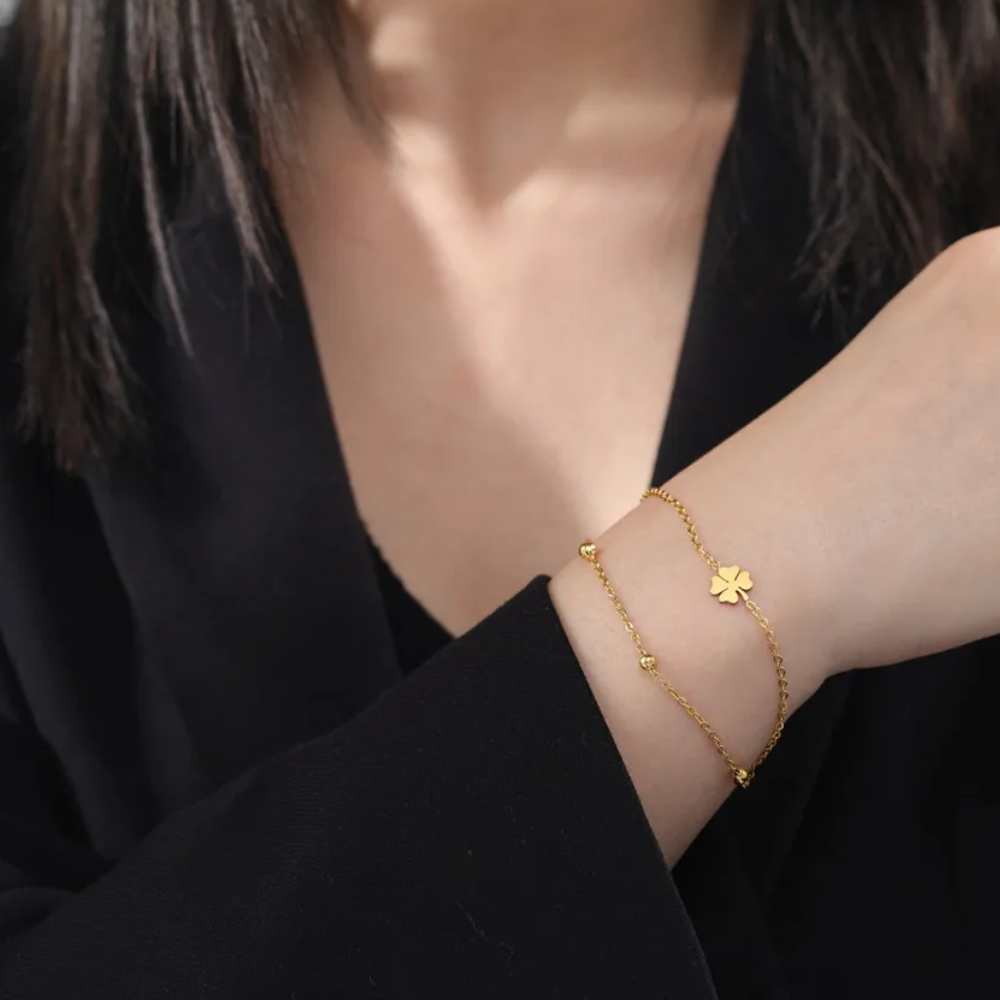 Bracelet Breloque Trèfle à Quatre Feuilles